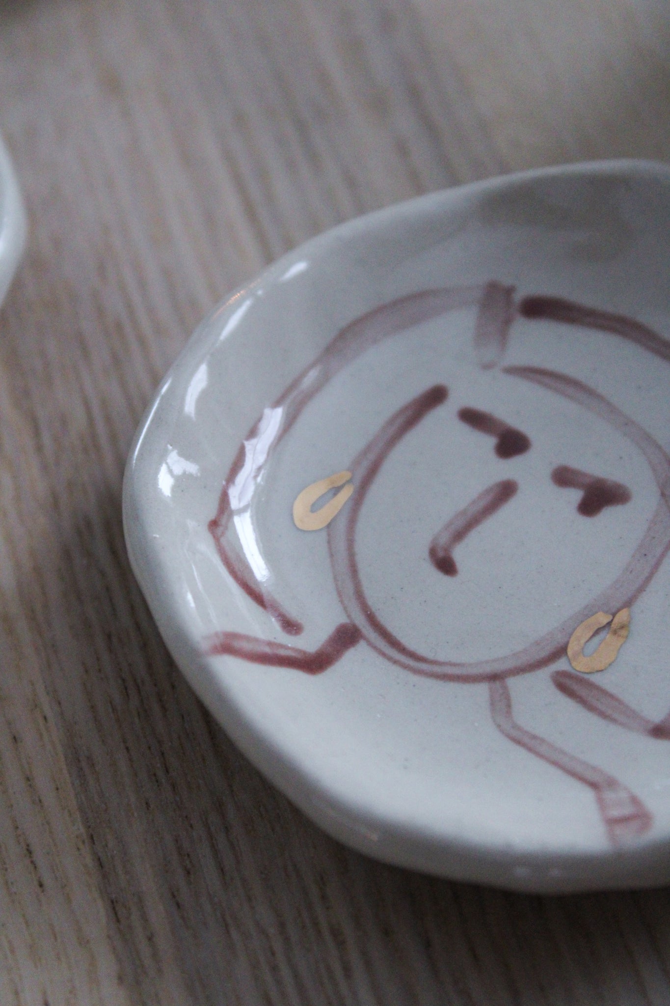 Handmålat minifat med örhängen av äkta guld
