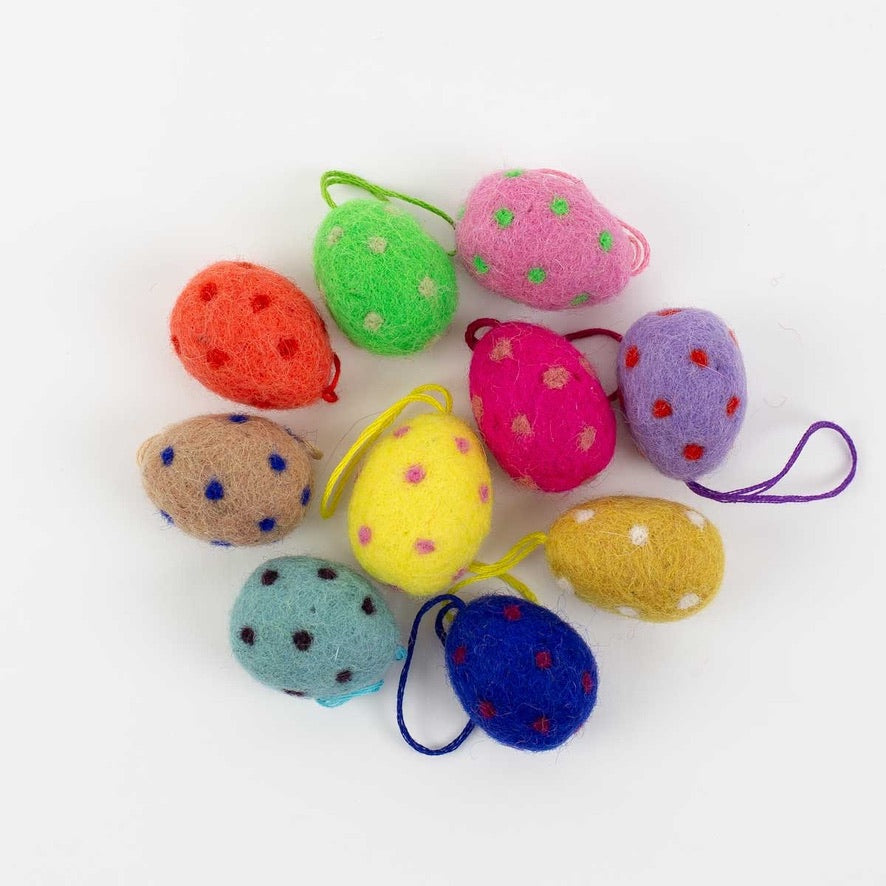 Prickigt fina påskägg att hänga i riset! Påskhänget görs helt för hand i Nepals högland.