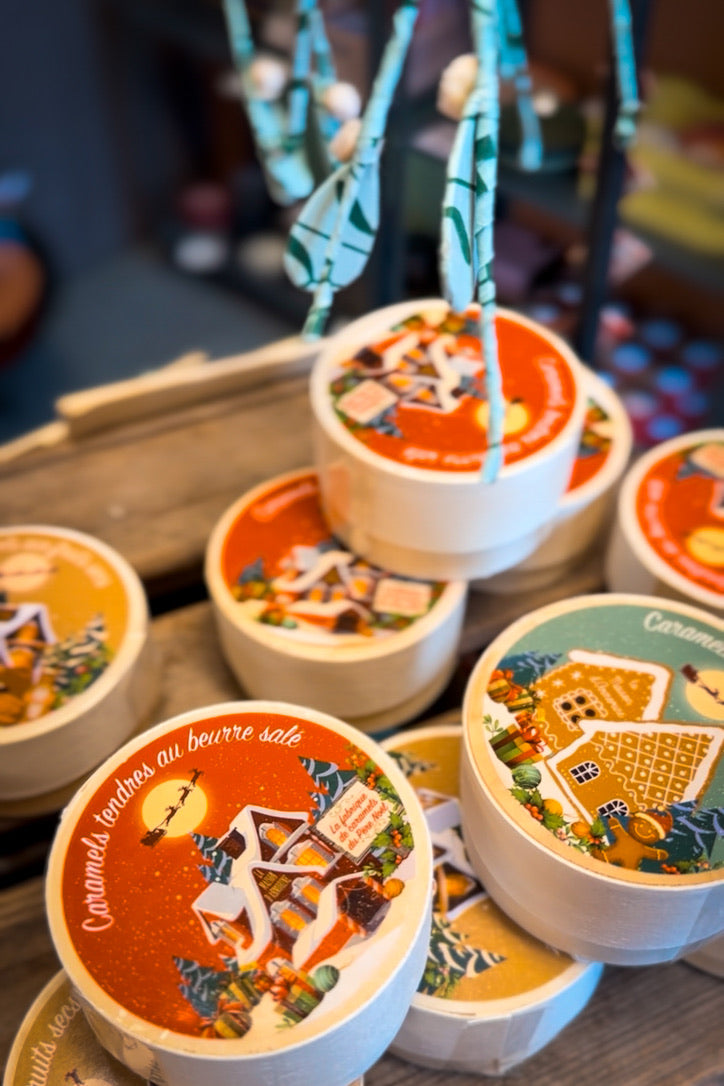 Mjuka smörkolor med rostad hasselnöt, i presentask av trä. Smörkolorna produceras enligt gammaldags metoder av Maison Armorine i Normandie, Frankrike. Innehåller ca 8 st kolor.